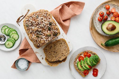 Sencilla receta básica para panificadora de pan multicereales. Mezcla la harina de trigo integral, la harina de centeno y las saludables semillas.