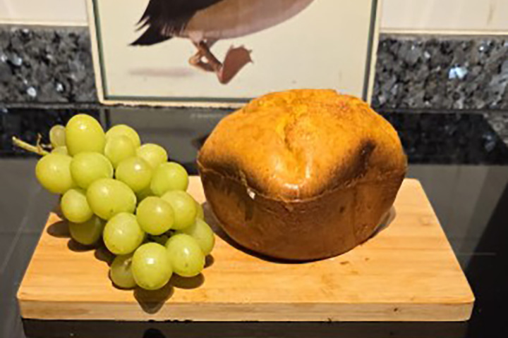 Mettre les ingrédients dans la cuve de la machine à pain dans cet ordre : Œufs, lait, huile, sel, farine, levure chimique (dans un coin, sans contact direct avec le liquide) |