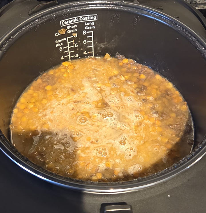 • Remettre le mélange dans le cuiseur à riz et bien mélanger le tout à l’aide d’une cuillère. |