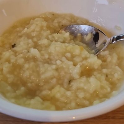 Ajoutez l’eau jusqu’au niveau 2 – Long Grain, le sel et la poudre d’ail. |