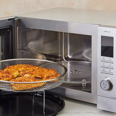 Crispy cornflake-coated chicken breasts are air-fried to golden perfection, then sliced and served with pasta, greens, bacon, and a punchy anchovy mayo. A crunchy, satisfying twist on the Caesar salad, made modern in the combi oven NN-CD88 with air fry function.