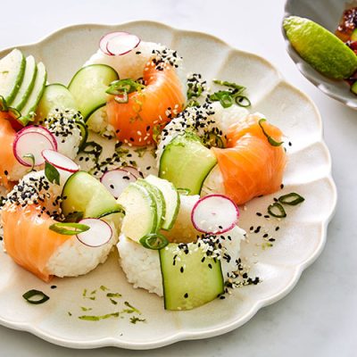Aceste chiftele japoneze de orez se prepară simplu prin gătirea somonului direct cu orezul de sushi în aparatul de gătit orez. Amestecate cu semințe de susan, nori și ceapă verde, apoi modelate în forme, sunt perfecte pentru gustări, pachete de prânz sau picnicuri.