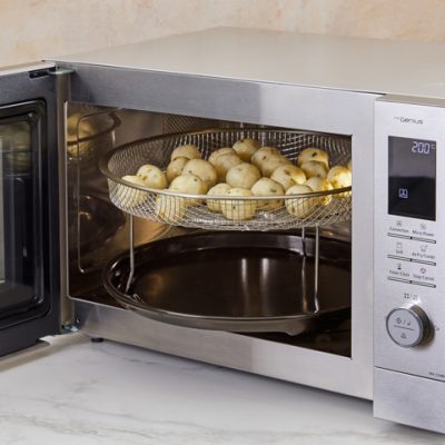 Helyezze a felaprított burgonyát egy hőálló tálba, és takarja le egy tányérral. Mikrózza a Panasonic kombi sütőben 10 percig, nagy teljesítményen (1000 W), amíg nagyon puha nem lesz. |